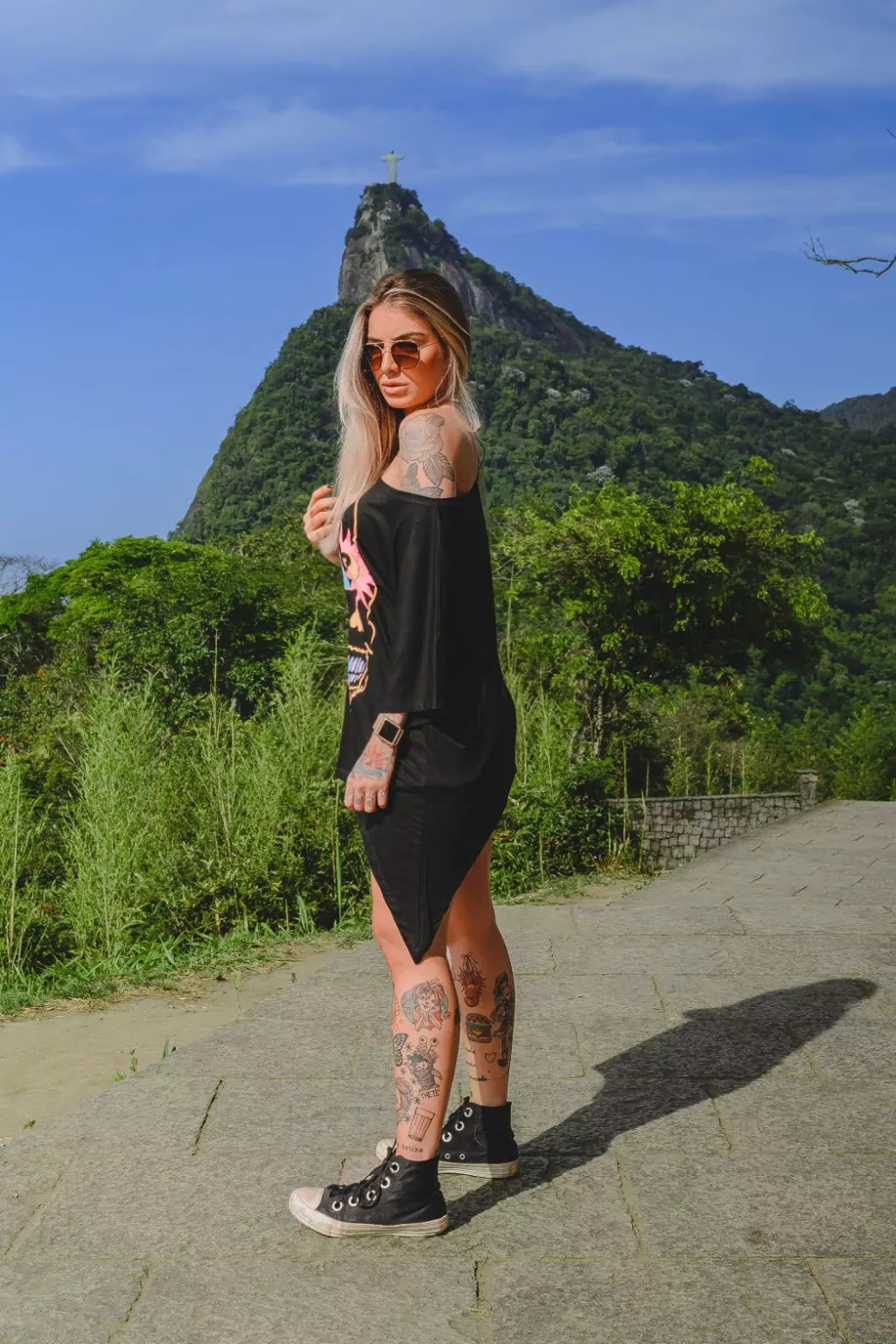 Seu tamanho único veste confortavelmente do 40 ao 46/48, adaptando-se perfeitamente ao seu corpo. O design assimétrico e a estampa de caveira trazem um ar moderno e descolado, ideal para quem deseja se destacar com estilo.