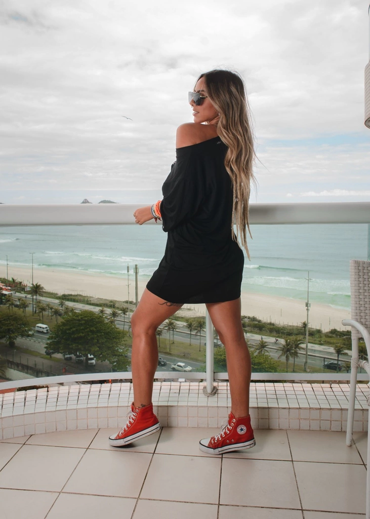 Seu tamanho único veste confortavelmente do 40 ao 46/48, adaptando-se às curvas com praticidade. Use como vestido ou camisão, combinando com short jeans e tênis para um look urbano e cheio de estilo.