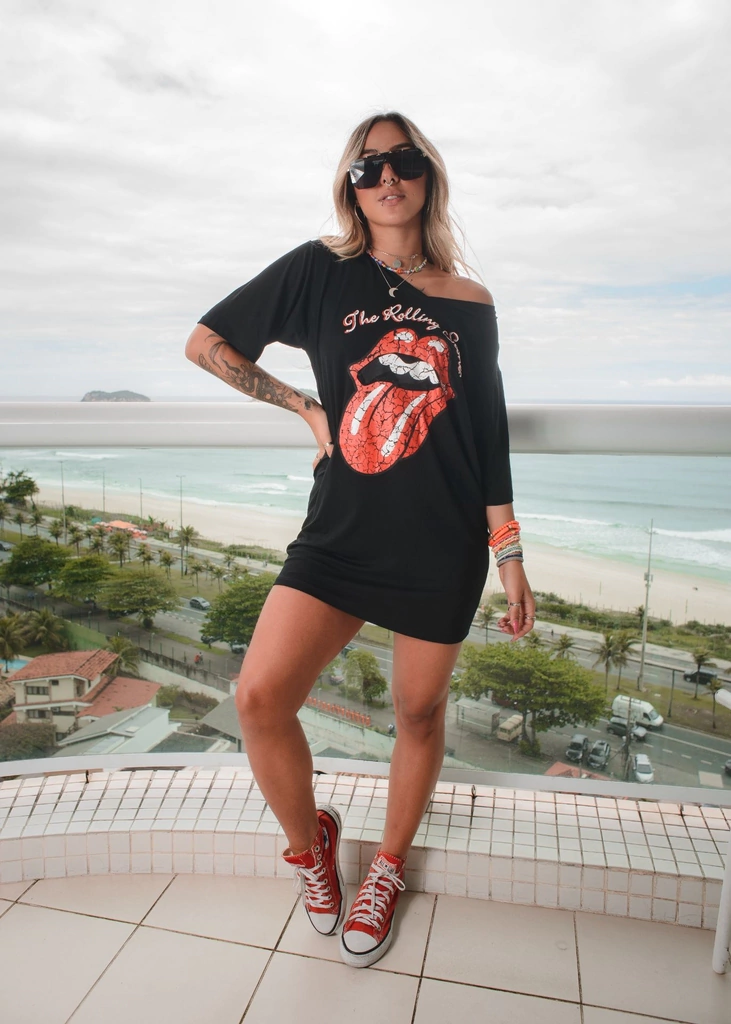 Descubra o T-dress V Confort confeccionado em malha Confort Premium (96% viscose e 4% elastano), que oferece toque suave e excelente caimento. Com estampa frontal icônica do Rolling Stones, esta peça é perfeita para quem busca um visual despojado e com personalidade.